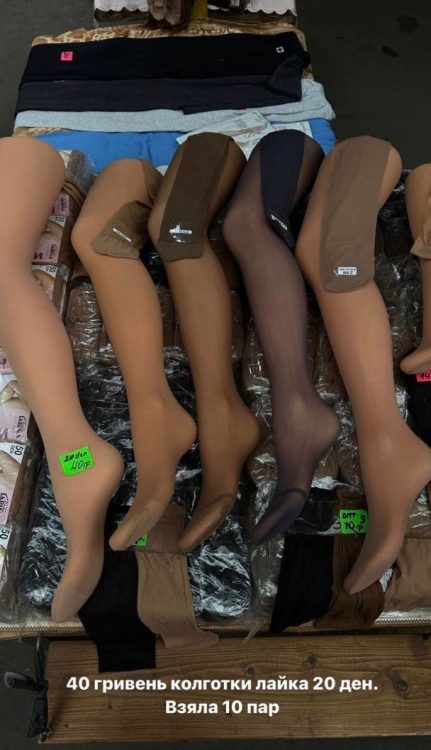 Леся Нікітюк придбала багато стильних речей за доступними цінами. Найбільше жінку здивували ціни на колготки. На Хмельницькому ринку вони коштують лише 40 гривень. Також справжньою знахідкою для Лесі Нікітюк став костюм з логотипами відомих брендів Gucci та Adidas. Його вартість 3800 гривень.