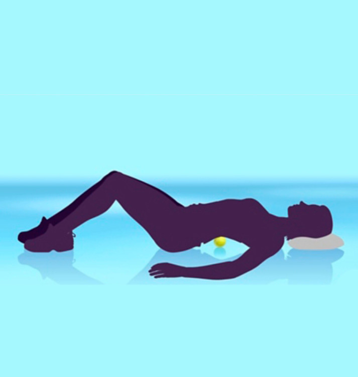 Щоб зменшити больові відчуття, можна покласти м’яч під проблемну ділянку і лежати на ньому нерухомо. Для зручності під голову слід підкладати подушку. Скільки часу проводити в положенні лежачи потрібно вирішувати самостійно, в залежності від відчуттів.