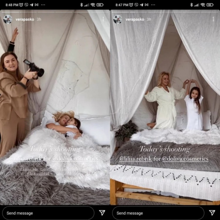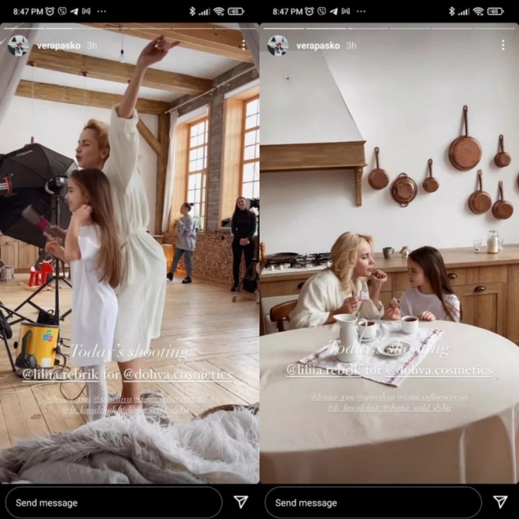 Донечка Лілії Ребрик теж позувала у бранні білого кольору. Дівчинка одягнула красиву сукню, замилувавши мережу своїм зовнішнім виглядом. На світлинах телеведуча позує з донечкою на кухні. Вона сидить за столиком та мило усміхається. Також жінка зробила красиві кадри у спальні.