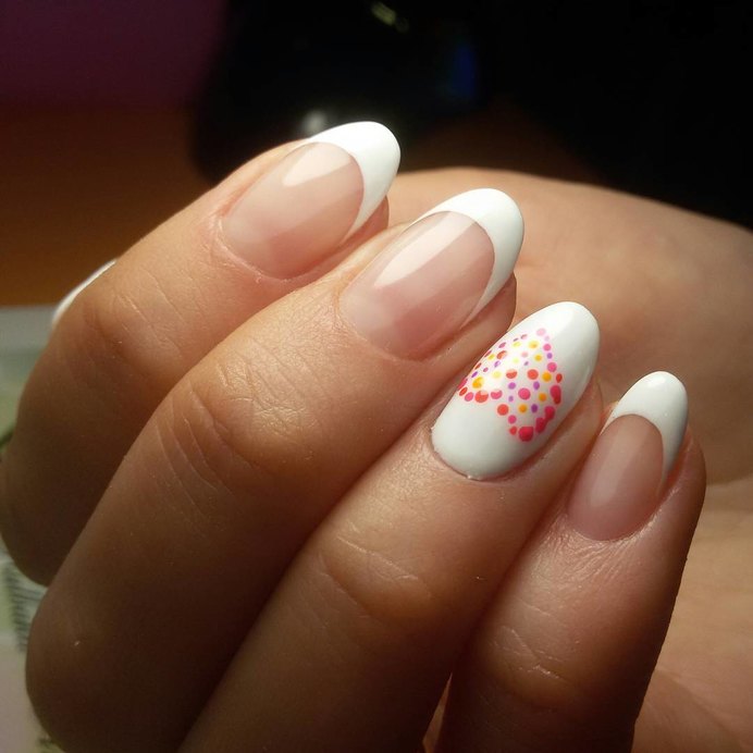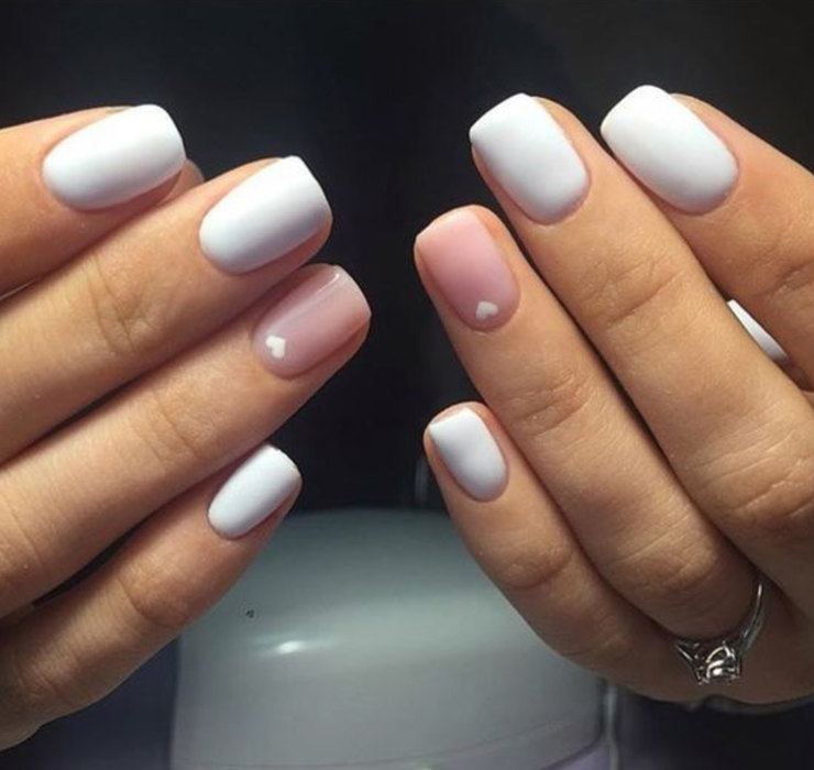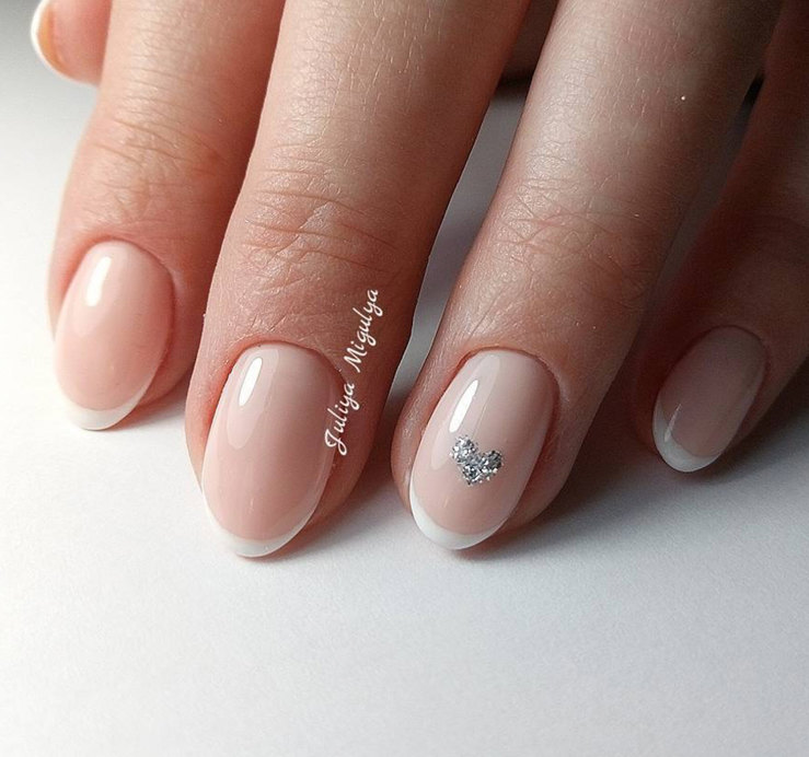 Шанувальницям френчу і мінімалізму в дизайні радимо звернути увагу на малюнки сердечок. Попроси майстра намалювати або викласти маленьке серце стразами.