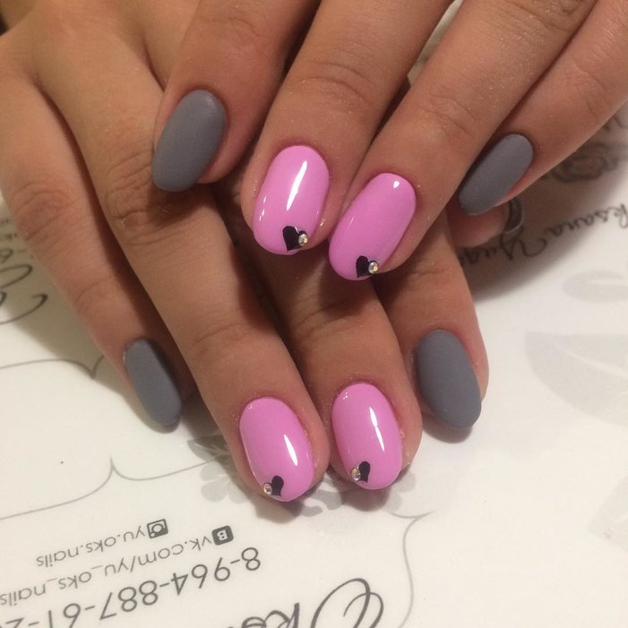 Другий за популярністю після червоного – манікюр в рожевих тонах. Можеш комбінувати глянсове покриття з матовим або спробувати дизайн з елементами оксамиту.