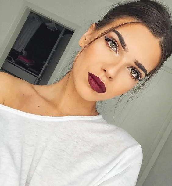 В даному випадку акцент робиться на губах, а це означає, що з макіяжем очей мудрувати не варто. Достатньо додати «тіні» на повіки, туш і за бажанням стрілки. Пам’ятайте, що існують теплі і холодні відтінки, і різним жінкам пасують різні «температури» – комусь бордовий з фіолетовим підтоном, а комусь з рудуватим.
