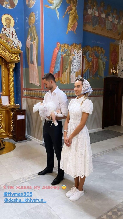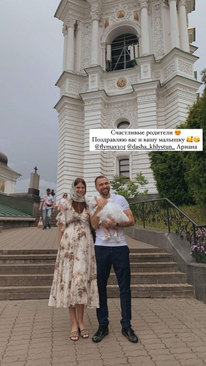 Таїнство хрещення відбулось 13 червня. Молоді батьки з нетерпінням чекали на цю зворушливу подію. На світлинах, які з’явились в мережі, Дар’я Хлистун постала перед камерою в ніжній сукні з квітковим принтом. Її коханий одягнув штани темно-синього кольору та білу футболку.
