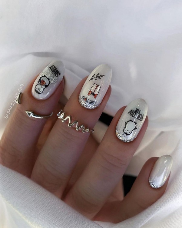 Наклейки в нейл-арті стали дуже потрібні. Їх полюбили не лише модниці, а й самі майстри манікюру. За допомогою цієї деталі можна зробити власний унікальний манікюр, який ніколи і ніхто не зможе повторити. Жінки у 2022 році будуть вибирати наклейки з глибоким змістом, це можуть бути написи, логотипи, ефектні фрази та певні дати. Тренд дозволить жінкам розкрити свої почуття та приховані бажання.