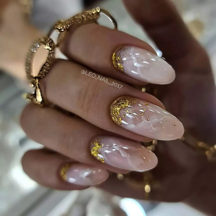 Дорогоцінне золото та приваблива нюдова палітра – це поєднання розкоші та стилю. У 2022 році саме така колаборація лаконічності та яскравості буде особливо актуальною. Спробуйте різні варіанти, вибирайте малюнки, обрамляйте пластину або виділяйте золотою посмішкою на нігтях.