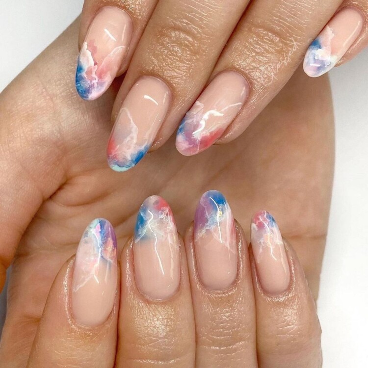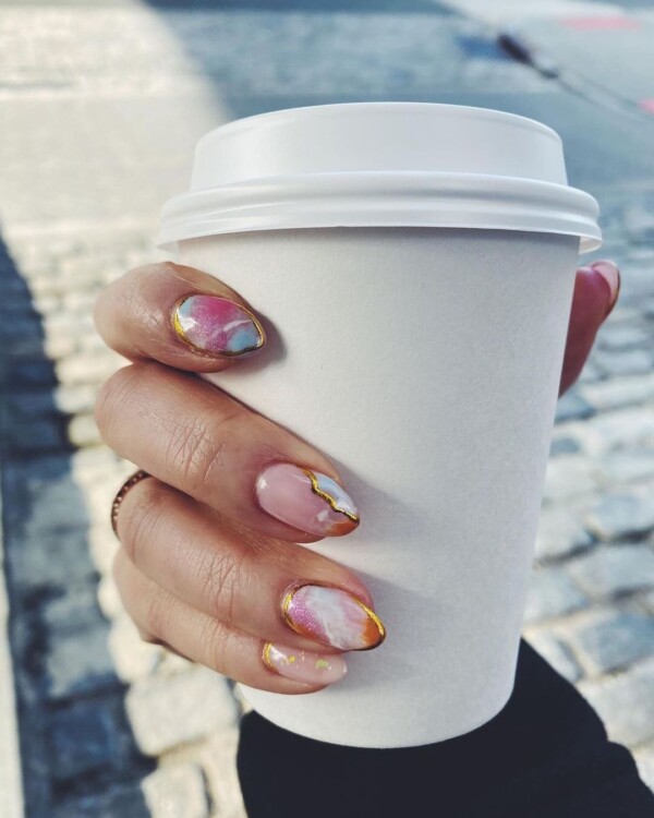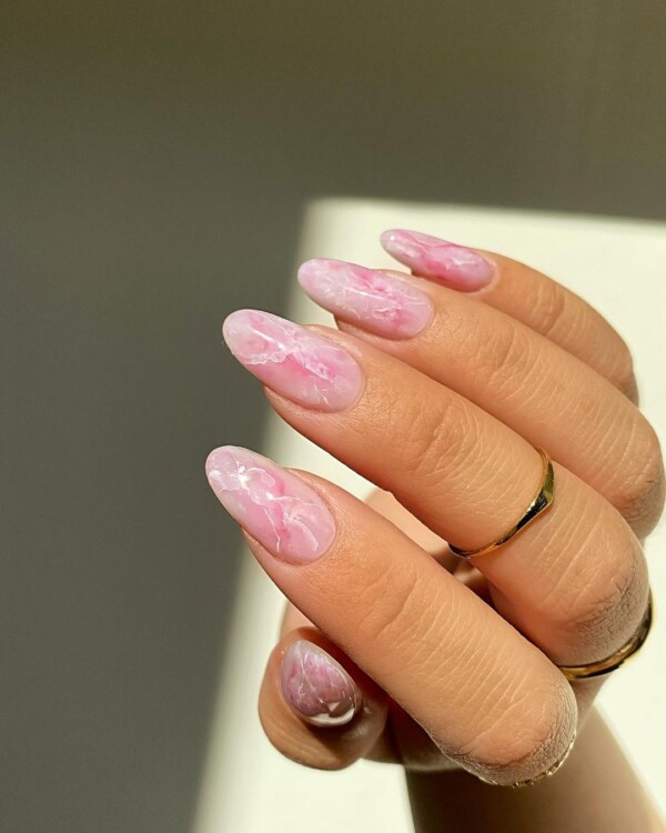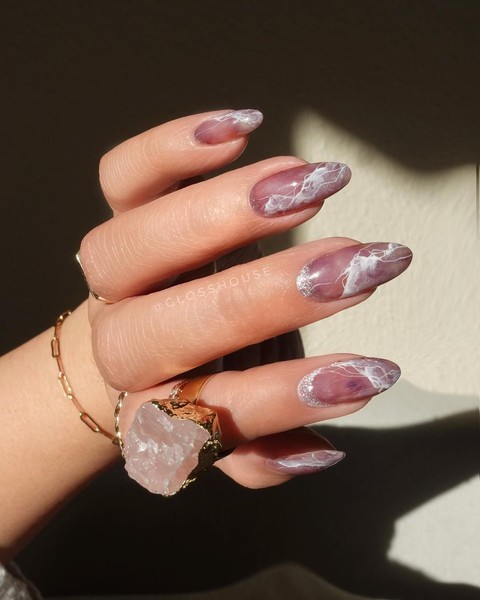 Мармуровий дизайн добре виглядає на нігтях будь-якої довжини, але на коротких вам просто не вистачить місця, щоб вдосталь поекспериментувати з візерунком. А ось на довгих є де розгулятися.