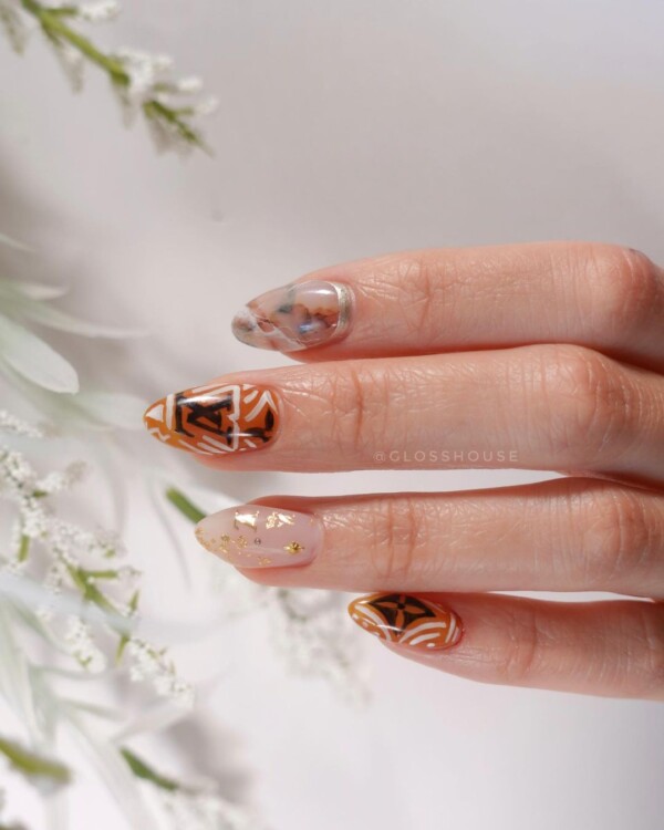 Складні деталізовані малюнки на коротких нігтях просто не помістяться. А на довгих ви зможете легко втілити свою задумку. Тільки давайте без стразів і каменів. А ось золота фольга, навпаки, дуже добре доповнить такий дизайн.