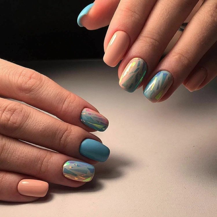 Манікюр у стилі «бите скло», створений із різнокольорових шматочків фольги