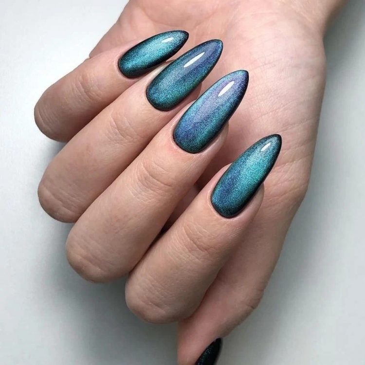 Манікюр «котяче око», покритий блискучими мікрочастинками