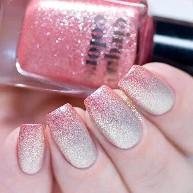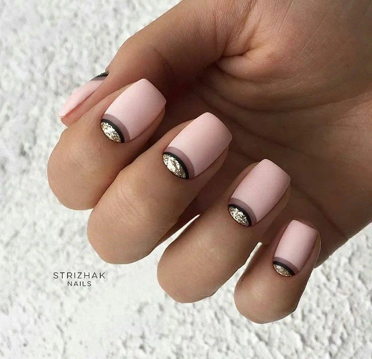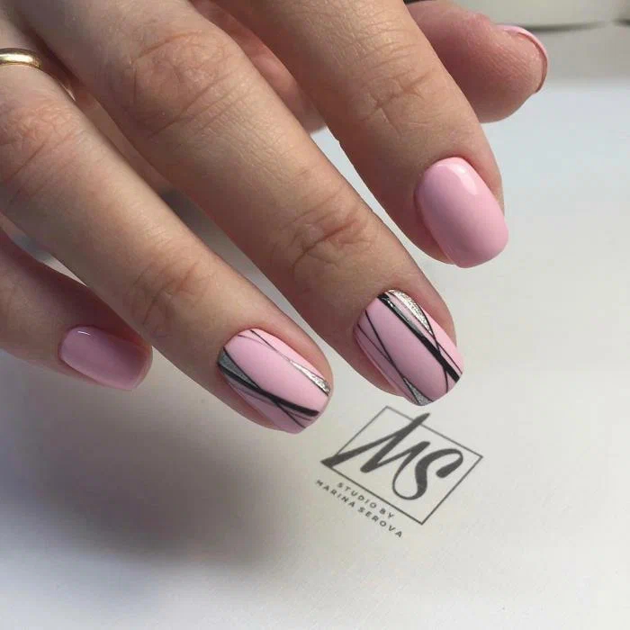 Рожеві відтінки лаку з доповненням у вигляді геометричного принта, виконаного блискітками