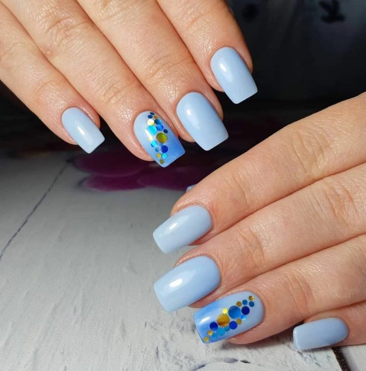 Манікюр із застосуванням великої кількості блискіток вважається найактуальнішим у літньому сезоні 2022 року. Для того, щоб створити стильний варіант покриття, майстром в якості блискучого матеріалу можуть бути використані різні варіанти – фольга, великі блискітки, слюда, кришталева крихта.