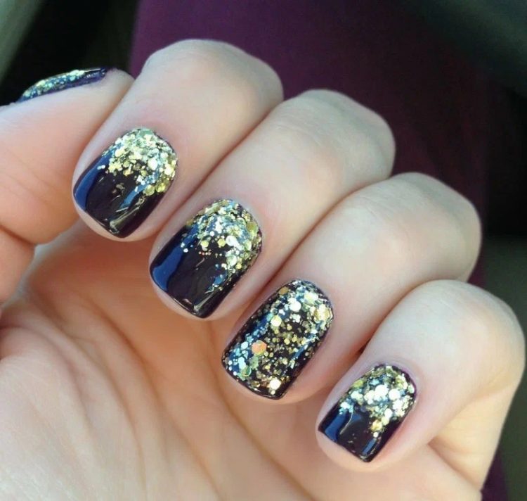 Чорне покриття, що інтригує, поєднане з великими золотистими блискітками