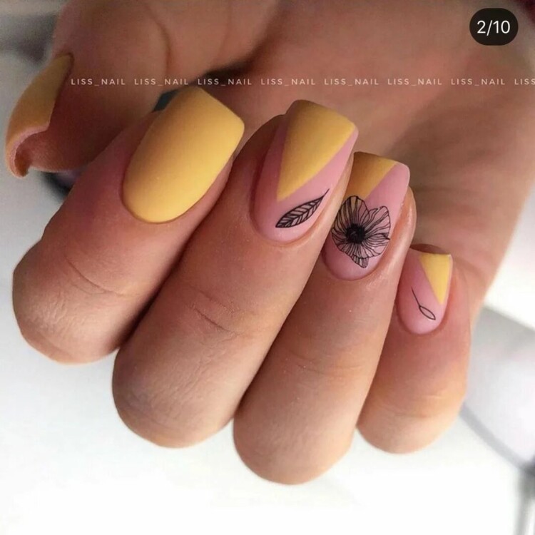 А що ви думаєте з приводу акварельної техніки нанесення малюнків? Вона прекрасно буде виглядати поряд з гірчичним лаком, створюючи ніжний і жіночний дизайн.