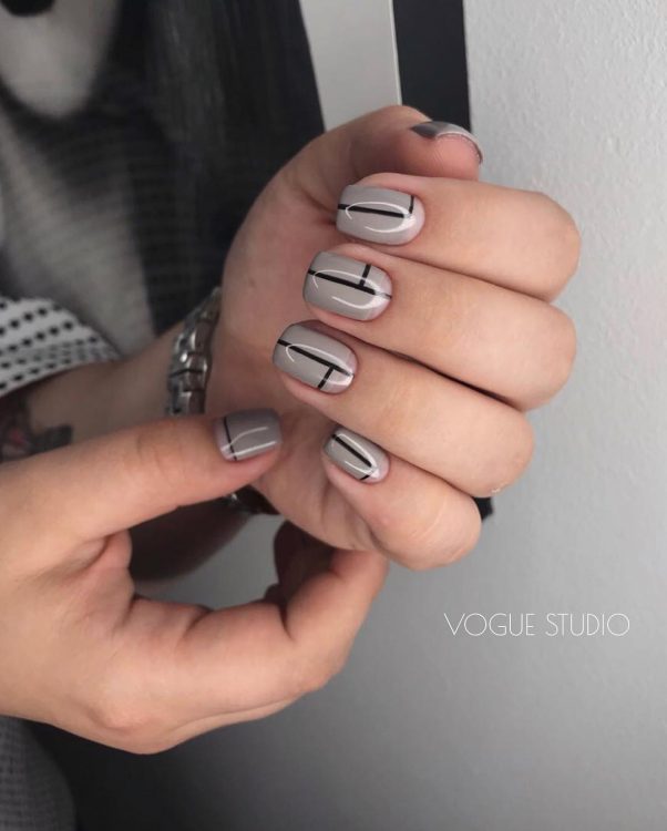 Восени 2022 року, геометричні дизайни, як ніколи, в тренді. Для створення модного манікюру на короткі нігті достатньо вибрати кілька смужок, які розміщують на всій пластині. Також можна вибирати складніші візерунки з геометричними фігурами, блискітками та стразами.