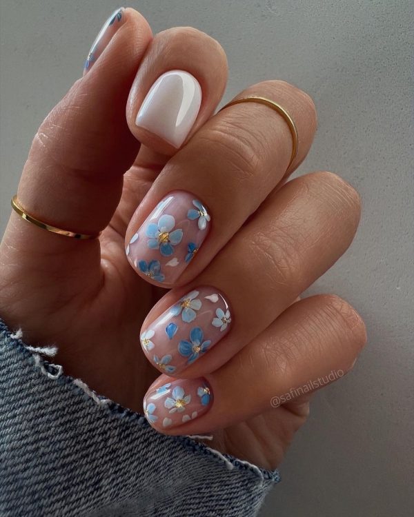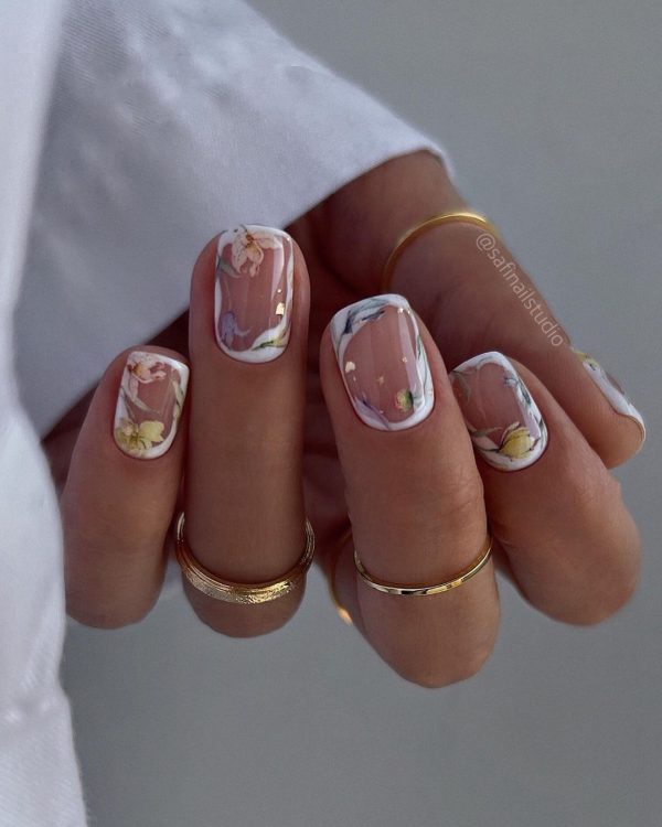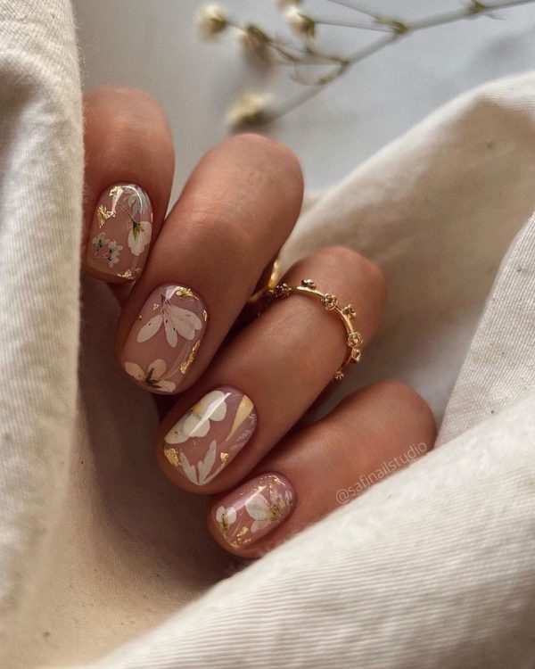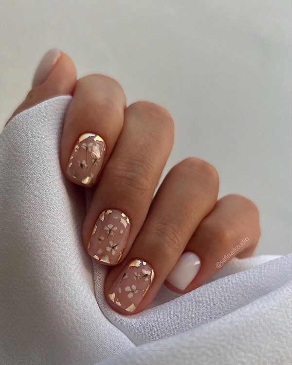Квітковий манікюр, незважаючи на осінній сезон, все одно має попит. Милі квіти, шикарні букети, яскраві композиції – вибирайте дизайн на короткі нігті, який хочеться вам. Єдина порада – робіть манікюр у приглушених кольорах лаку, щоб дизайн підходив до будь-якого образу на осінь.