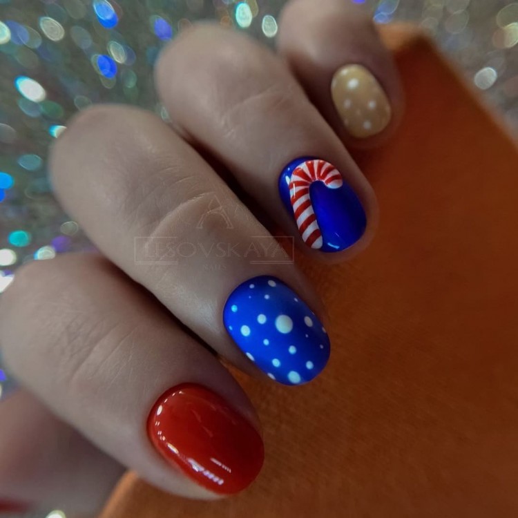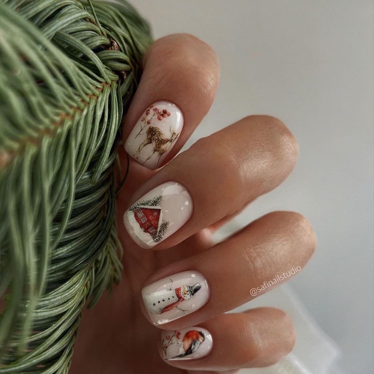 Прикрасьте його малюнками сніговика, ялинки або оленями, додайте трохи блискіток та стразів, та отримайте чудовий корпоративний варіант манікюру.