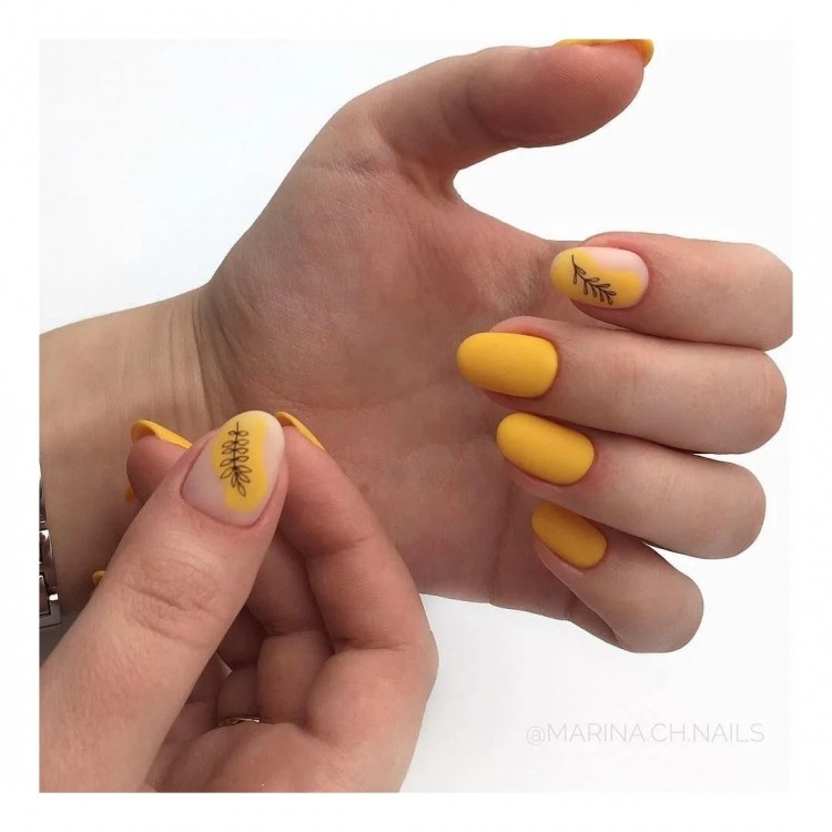 Не можете без малюнків? Додайте зовсім небагато, наприклад, парочку листочків чорного кольору на жовтому фоні. Як ми вже казали – листочки зараз у тренді. Але тільки мінімалістичні!