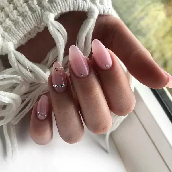 У плані форми та довжини нігтів, то тут теж не варто перегинати палицю. Занадто довгі гострі “кігтики” не зовсім асоціюються з ніжним нюдом. Краще вибрати мигдаль або м’який квадрат і середню довжину.