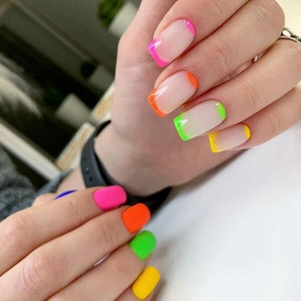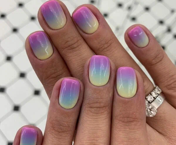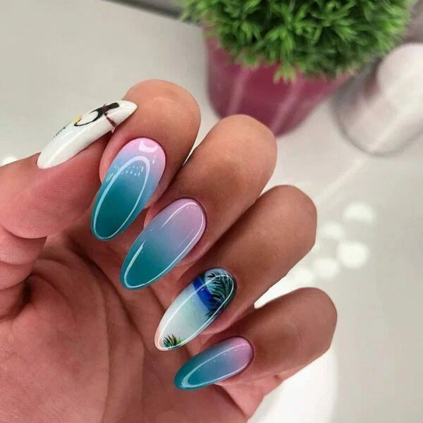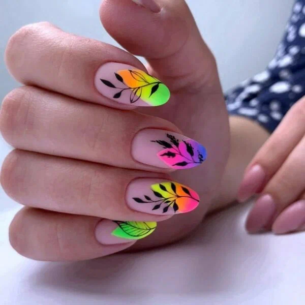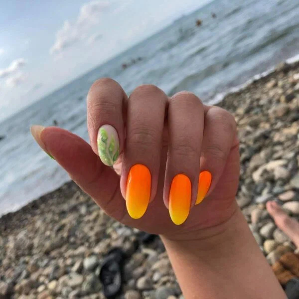 Літній манікюр 2023 року запам’ятається градієнтними переходами і яскравим неоном. При цьому техніку омбре можна прикрасити розписом, блискучими деталями, у тому числі фольгою, блискітками та втиранням. Можна підібрати споріднені чи контрастні кольори. Градієнт можна втілити у поєднанні з неоновими фарбами.