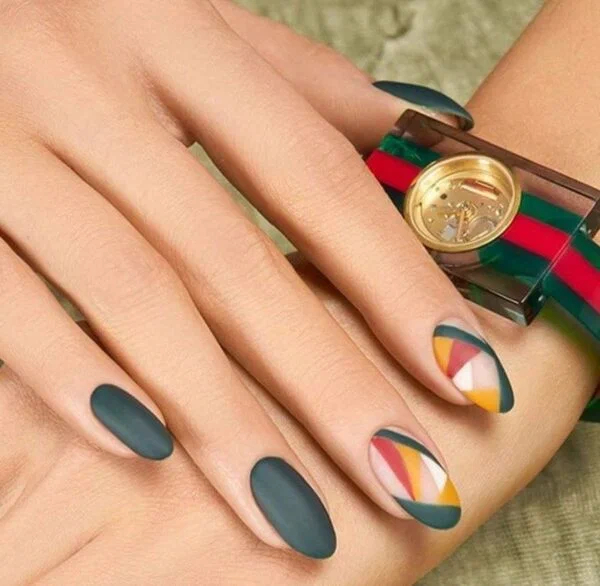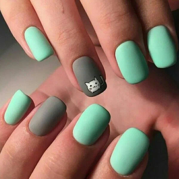 Причому матовий манікюр може бути реалізований не лише у спокійному, а й в яскравому дизайні. Текстура надає нігтикам вишуканого та естетичного зовнішнього вигляду. За бажання можна доповнити манікюр абстрактними елементами, художнім розписом, мерехтливими вставками та іншими цікавими деталям.
