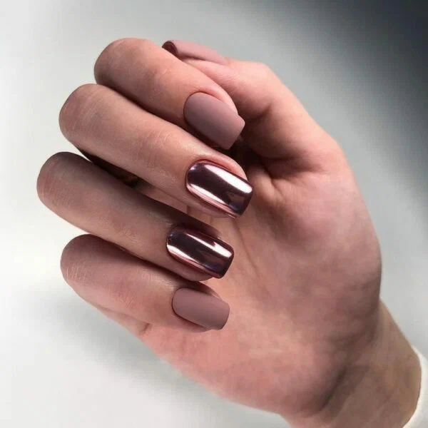 Нейтральний манікюр із матовою текстурою привнесе у літній образ елегантність. При цьому рекомендується зробити вибір на користь світло-сірого, бежевого або світло-рожевого покриття. Можна нанести матовий гель-лак на всі нігтьові пластини або на один пальчик – для контрастності.