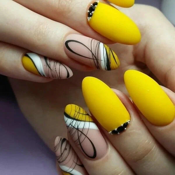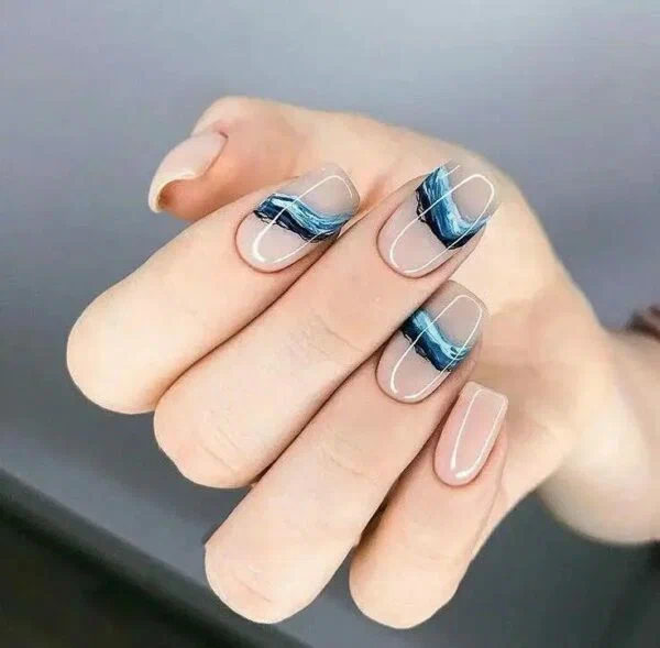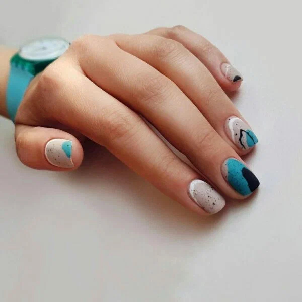 Розглядаючи модні ідеї манікюру для літа 2023, варто віддати перевагу абстракції. Для різноманітності можна прикрасити нігті недбалими крапками, мазками, легкими візерунками, написами чи плавними лініями