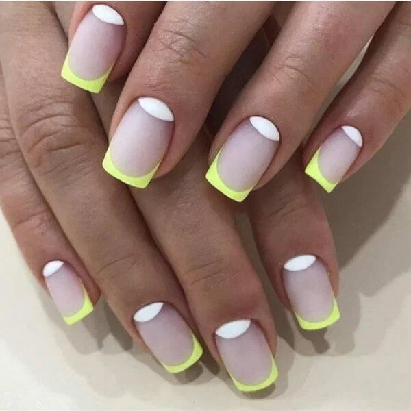 Френч – класика, яка постійно обростає новими ідеями та не втрачає актуальності. У наступному сезоні пропонується зробити французький манікюр із яскравим акцентом. Достатньо нанести на кінчики нігтів яскравий колір.