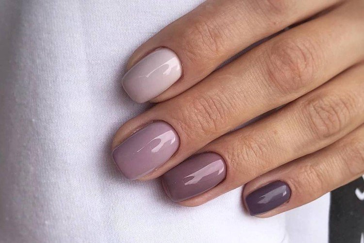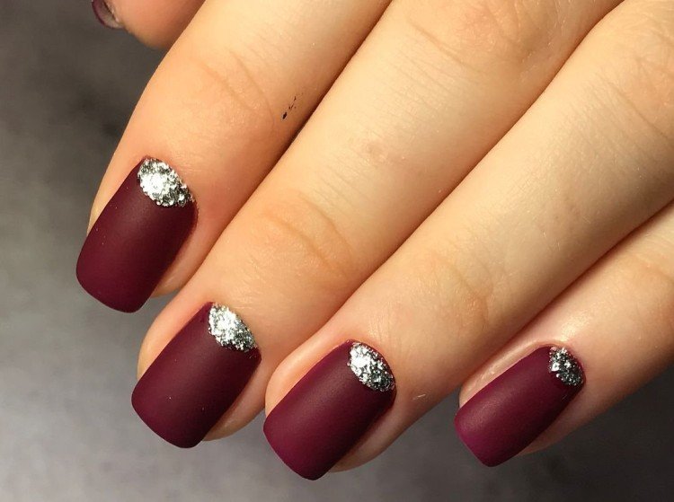 Якщо з наближенням холодів вас тягне на більш темні відтінки в манікюрі, радимо спробувати фіолетові і бордові у всьому їх різноманітті. Тим більше, вони дуже стильно виглядають на коротких нігтях.