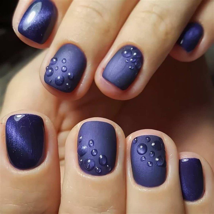 Колись такий дизайн вже був у моді але потім поступово забувся. Але все циклічне, і ось об’ємні краплі, що переливаються, знову прикрашають короткі нігті.