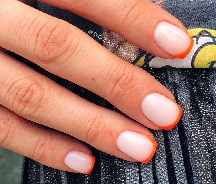 Тут все стабільно: білий френч все ще поступається кольоровому або френчу з акцентами. Головні відтінки – гірчичний, помаранчевий, смарагдовий, фіолетовий і сталевий.