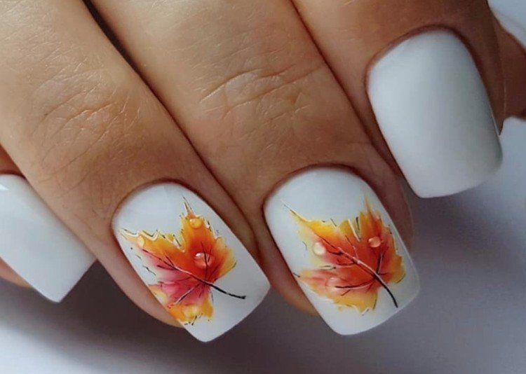 Літні квіти до вересня змінюються ошатними осіннім листям. Це не обов’язково великі малюнки: дрібні акценти на окремих нігтях теж дуже гарно виглядають.