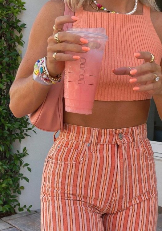 Що стосується нейл-індустрії, той і в ній ніжні персикові відтінки або манікюр із цими плодами найчастіше можна побачити саме в теплу пору року. Взимку і восени оранжево-рожевий колір вкрай дозований і його можна побачити як поодинокі вкраплення. У будь-якому випадку, вибір дизайну в головному кольорі 2024 безпосередньо залежить від наявної у майстра палітри, його фантазії і вашого смаку.