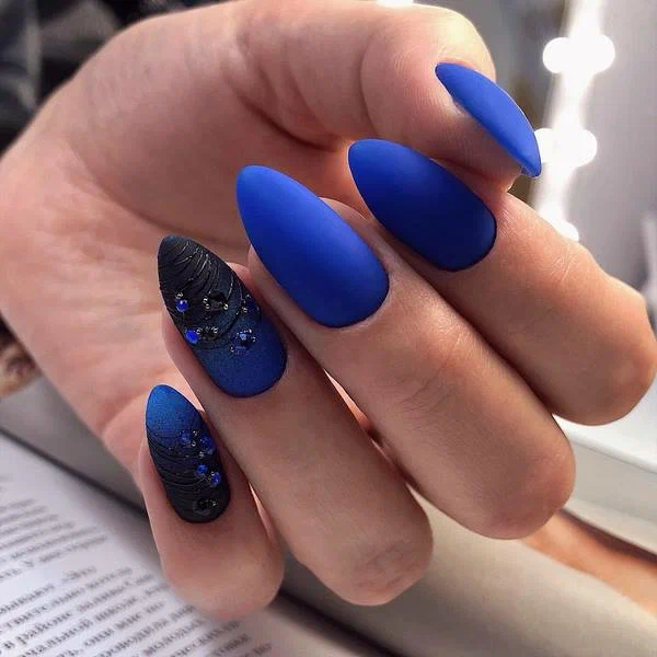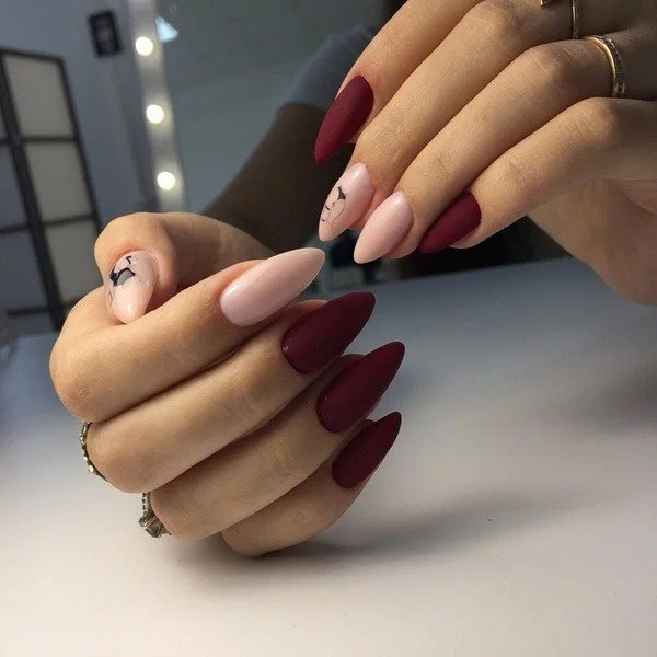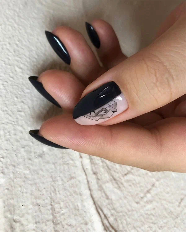 Застосовуючи матовий і глянсовий фініш у популярному темному манікюрі можна втілити в життя досить яскраві нейл-арт дизайни, як для свята, так і на будь-який інший день.