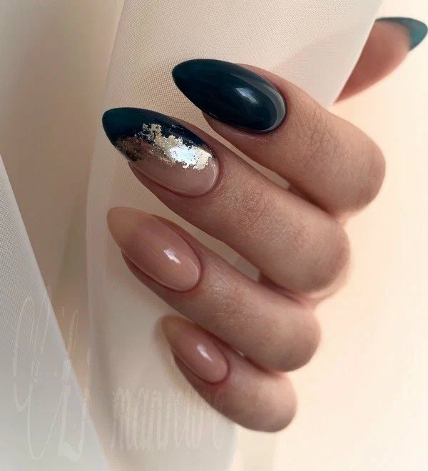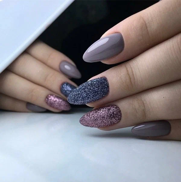 Щоб отримати дійсно сучасний дизайн манікюру, важливо застосувати допоміжні світлі відтінки гель-лаку або блискучий і сяючий декор на темних нігтиках.