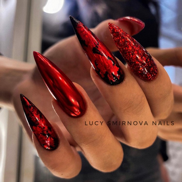 Цьому тренду настав кінець, хоча минулого року він був надзвичайно популярним. Тепер втирання доречне лише на 1-2 пальчиках, і його необхідно міксувати з матовим покриттям.