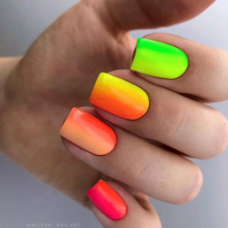 Замість веселки на нігтях краще віддати перевагу стриманому однотонному покриттю. Воно виглядає лаконічно та благородно. Освіжати манікюр слід як мінімум 1 раз на 3 тижні. Інакше нігті виглядатимуть недоглянутими, чого не можна допускати для підтримки ефектного образу.