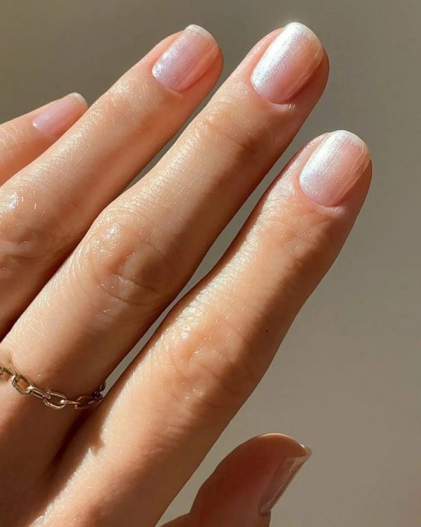 “Ангельський” дизайн прийшов на зміну дщо обридлим “глазуваним” нігтям. У них чимало спільного: мінімалістичне напівпрозоре покриття, що переливається дрібними блискучими частинками. Ось тільки різниця в тому, що “глазований” манікюр виконується за допомогою втирання, яке наноситься на прозору або нюдову базу, а для “ангельського” манікюру вам знадобиться спеціальний блискучий лак. Від звичного лаку з гліттером його відрізняє розмір блискучих частинок: окремі блискітки в ньому не повинні бути помітні для ока, а лише створювати делікатне сяйво.