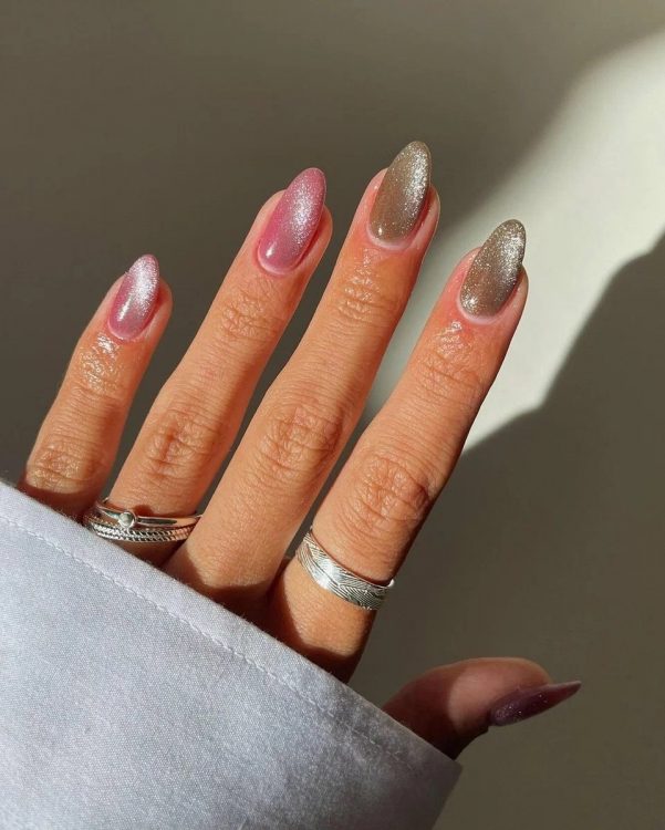 Мабуть, про “оксамитовий” манікюр чули всі. Цей нейл-тренд з’явився ще минулої весни і відтоді не зникає з модної арени. Принцип його гранично простий: покриття виконується за допомогою спеціального лаку з дрібними металевими частинками, які під впливом магніту (він іде в комплекті з лаком) змінюють своє положення і починають переливатися, немов оксамитова тканина. “Оксамитовий” манікюр можна зробити буквально будь-якого кольору, проте якщо ви не відносите себе до шанувальників яскравих дизайнів, радимо зупинити свій вибір на нейтральній гамі. У цих відтінках “оксамитове” покриття виглядатиме не менш ефектно.