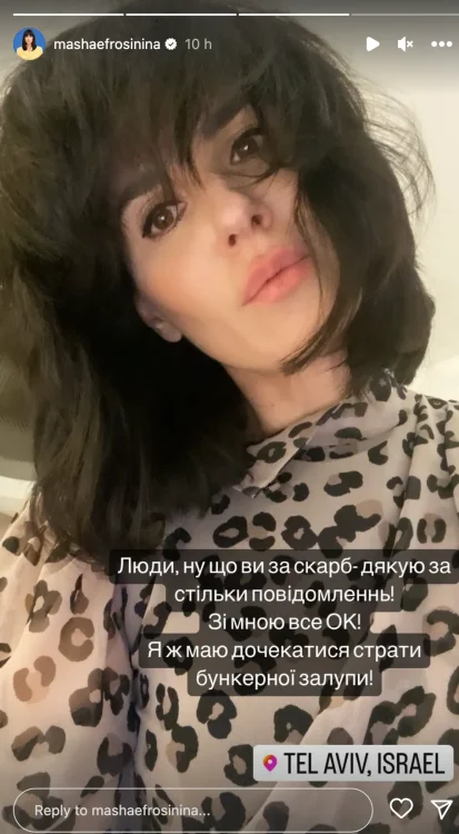 Через деякий час знаменитість все-таки вийшла на зв’язок. Маша Єфросиніна повідомила, що, на щастя, не постраждала. Також телеведуча звернулась до своїх підписників, подякувавши їм за турботу й хвилювання.