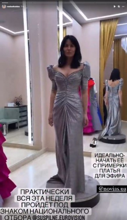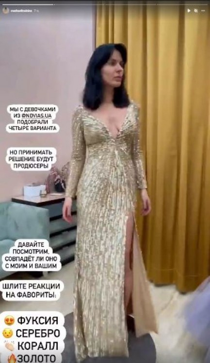 Зірка українського шоу-бізнесу активно готується до цієї події. Маша Єфросиніна ретельно підбирає вбрання, в якому з’явиться у фіналі нацвідбору. Варіанти суконь вона показала в Instagram-stories.