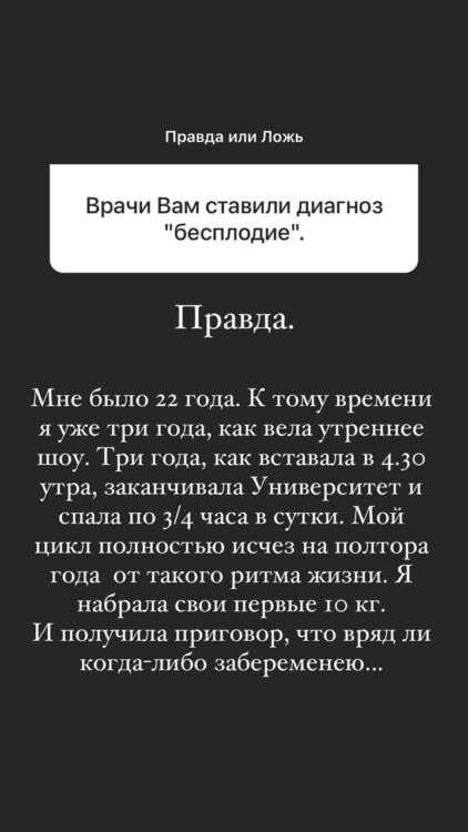 Популярна телеведуча, успішна жінка та мама двох дітей Маша Єфросиніна спантеличила фанів своїм зізнанням. Не так давно жінка розповіла, що майже 20 років тому їй поставили діагноз безпліддя. Про це Єфросиніна повідомила в Instagram stories.