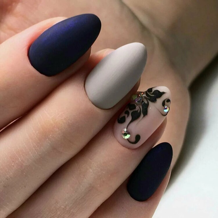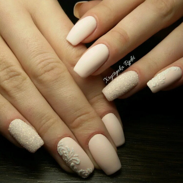 Матове виконання манікюру завжди привертає до себе увагу. Особливо, якщо манікюр виконаний в цікавих тонах з додатковими елементами декору. Для універсального манікюру добре підійдуть спокійні відтінки. Також для різноманітності можна застосувати більш насичені кольори.