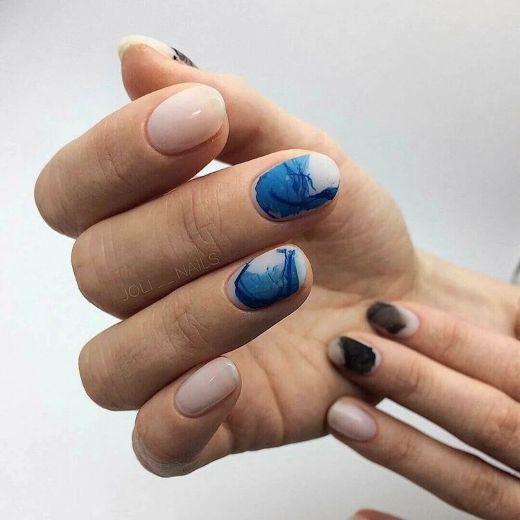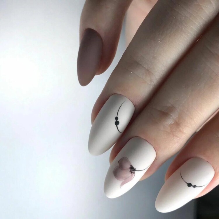 Цього року популярна тенденція суміщення глянцевого покриття з матовим. Ефект виходить доволі цікавим. Все залежить звичайно ж від відтінків і декору. Варто також розглянути художній розпис у вигляді флористики. Особливо добре він гармонує з пастельними і нюдовими відтінками.