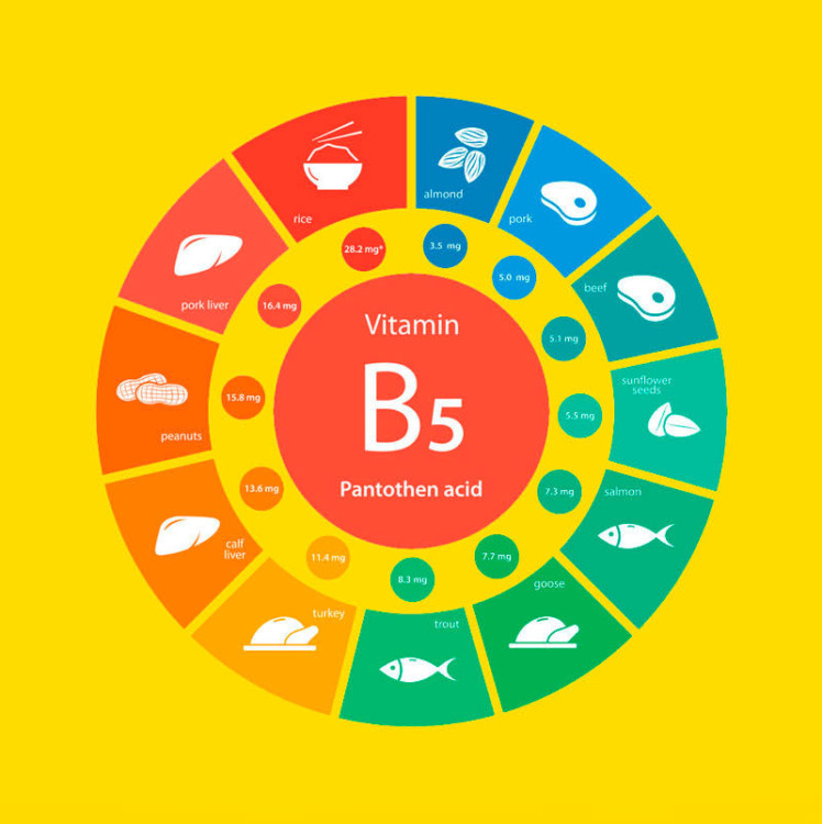 Пантотенова кислота або вітамін В5 міститься в багатьох продуктах, які ми вживаємо щодня. Потрапляючи в організм, вона бере участь в синтезі багатьох ферментів, розщеплює жири і кислоти, нормалізує обмінні процеси і впливає на рівень гемоглобіну в крові.