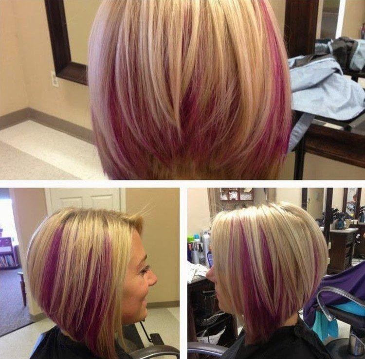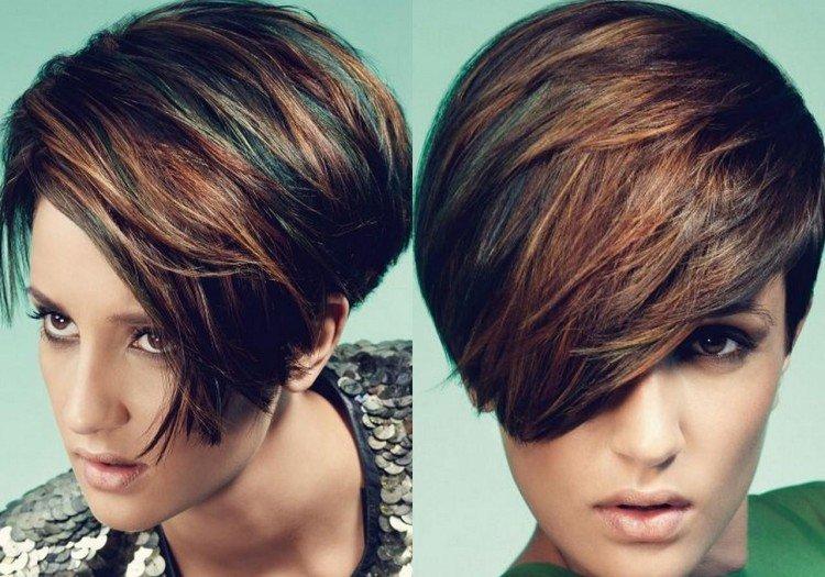 Це найпопулярніший прийом серед власниць асиметричних коротких стрижок і косого чубчика. Перед фарбуванням волосся розділяють по діагональних проділах. Так що і потім ви зможете змінити образ, просто вкладаючи пасма по-іншому.