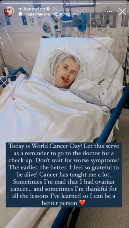 “Сьогодні Всесвітній день боротьби з раком! Нехай це послугує нагадуванням про те, щоб піти до лікаря на огляд. Не чекайте допоки симптоми стануть ще гіршими! Чим раніше, тим краще”, – звернулась до підписників Міка Ньютон. Знаменитість зауважила, що дуже важливо вчасно звертатись до лікаря та проходити профілактичні обстеження.