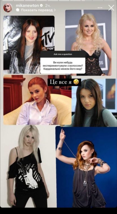 Юзери поцікавились, чи змінювала Міка Ньютон колір волосся. Співачка із задоволенням дала відповідь на запитання, опублікувавши колаж з архівними фото. Вона вперше показала, якою була декілька років тому. На кадрах Міка Ньютон позує брюнеткою та з рудим волоссям. Наразі співачка блондинка.