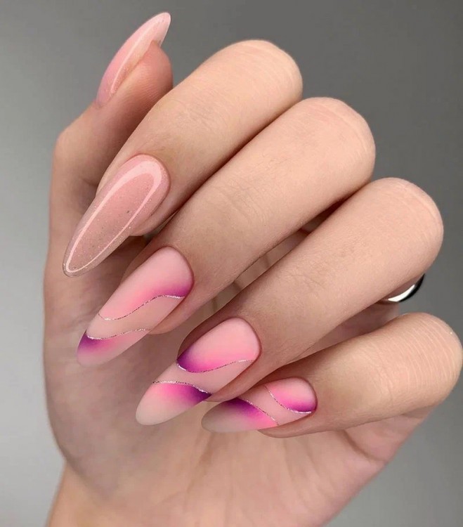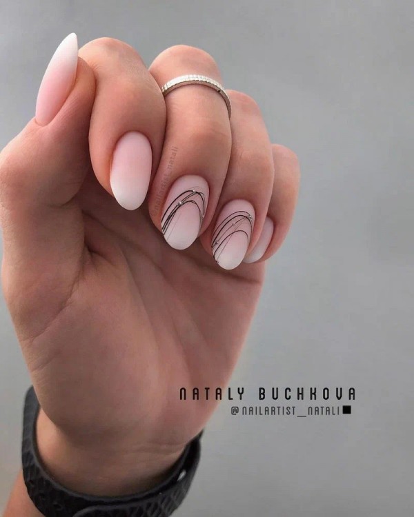 Ніжний тандем запропонували майстри у новому сезоні 2022-2023, поєднавши матовий градієнт із малюнком гелем «павутинка». Матові нігтики у відтінку нюд, як завжди виглядають дуже мило та витончено, а «павутинка» в дизайні парочки нігтів робить манікюр цікавим та оригінальним.