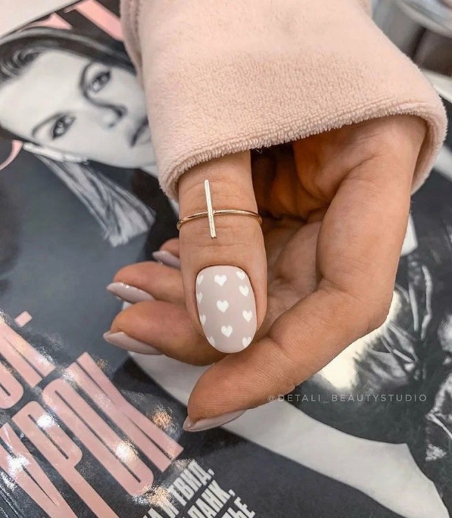 Гарний і модний манікюр із романтичними нотками тепер під силу виконати навіть новачкам. Йдеться про милий дизайн із серцями, які можна зробити контрастними – у такому випадку достатньо одного невеликого серця на нігті, або нейтрального відтінку, тоді можна намалювати трохи більше сердець, які не обтяжать модний мінімалістичний дизайн.