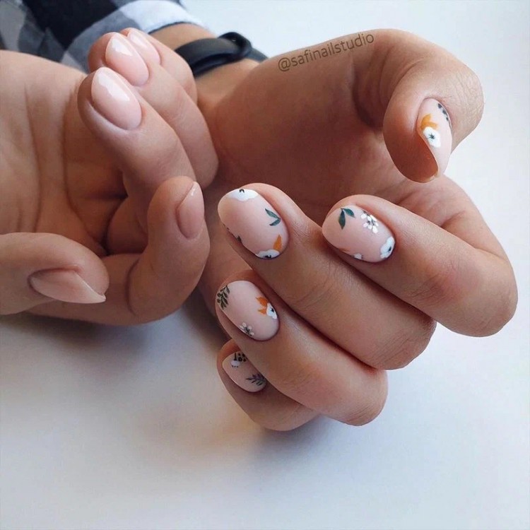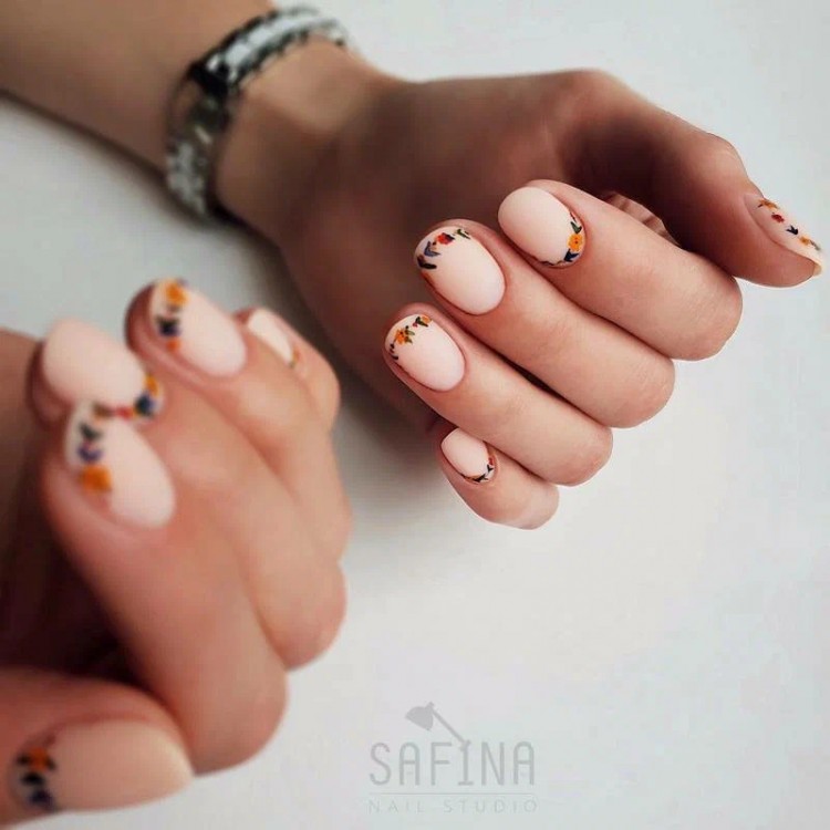 Квіткові орнаменти підкорюють своєю ніжністю та перевагою, презентуючи найнеймовірніші ідеї мінімалістичного манікюру. Щоб отримати модний нейл-арт, можна зобразити одну велику квітку або багато маленьких. При цьому красиво виглядатиме як глянсовий, так і матовий варіант мінімалістичного манікюру з квітами.